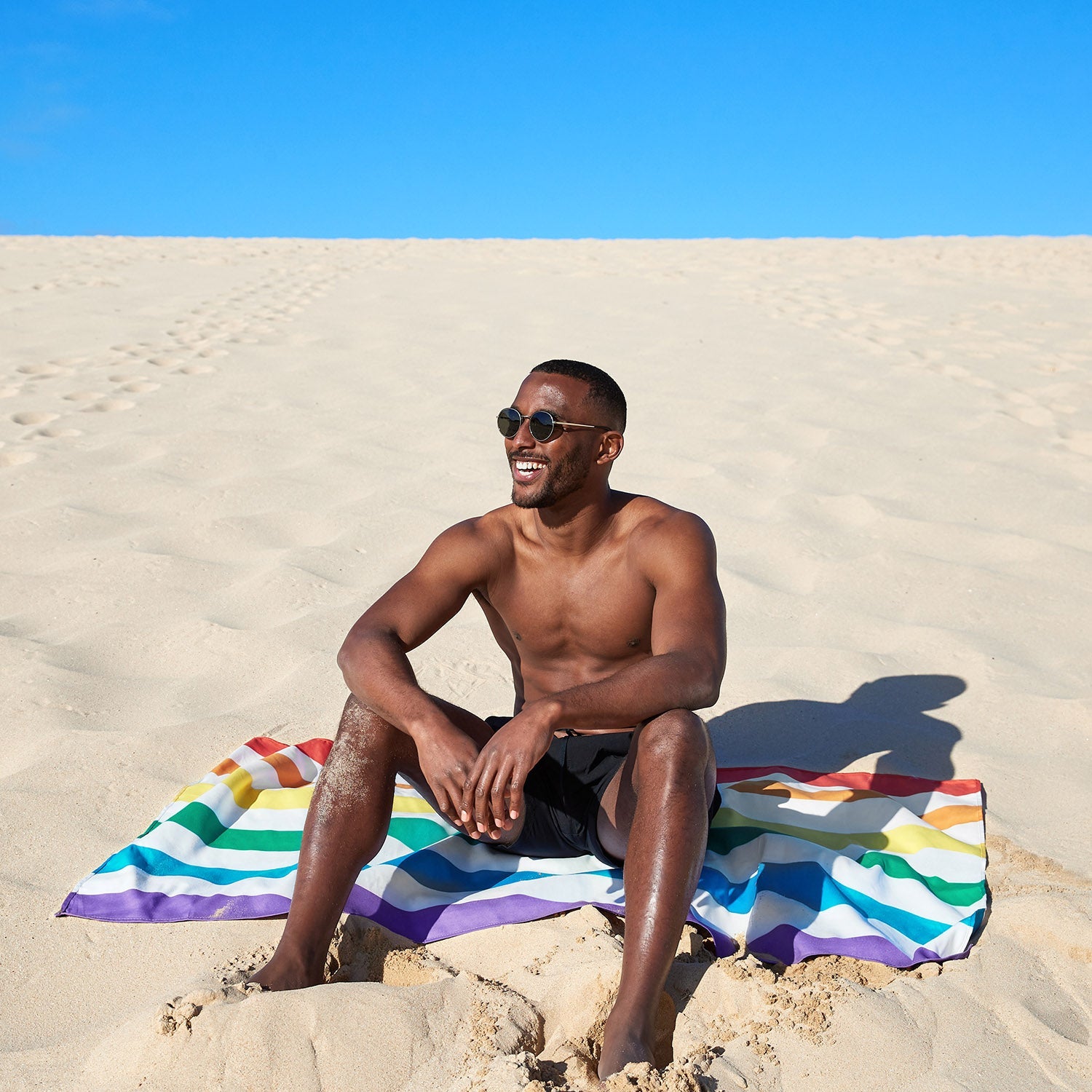 Hergestellt aus unserem hochwertigen DryQ™-Gewebe aus 100 % recyceltem Material, trocknet es viel schneller als herkömmliche Baumwollhandtücher und nimmt keine feuchten Gerüche an. Sand lässt sich einfach abschütteln, es lässt sich klein in seinem ikonischen Beutel verstauen und ist im Handumdrehen wieder einsatzbereit.