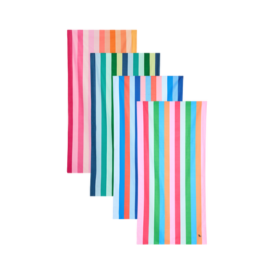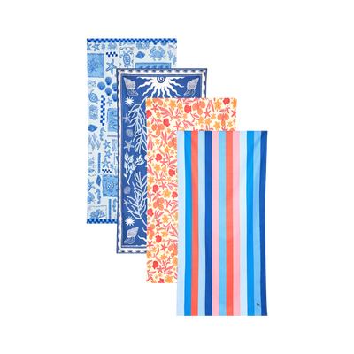 Quick-dry beach towels made from DryQ™ fabric that dries 3x faster than cotton and repels sand effortlessly. Available in over 40 vibrant designs and three sizes (Medium, Large, Extra Large), each towel packs incredibly small into its pouch. Made from 100% recycled materials. Perfect for beach holidays, pool days, and outdoor adventures.